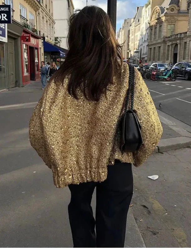 Diese auffällige Paillettenjacke ist dein perfekter Begleiter, wenn du glänzen willst – im wahrsten Sinne des Wortes. Das Modell überzeugt durch seinen lockeren Oversize-Schnitt, funkelnde Pailletten und einen hohen Kragen für den besonderen Siehe. Ideal für Partys, Events oder stylische Alltagsmomente, in denen du zum Mittelpunkt wirst. Hol sie dir jetzt und setze ein Mode-Statement wie echte Fashionistas.