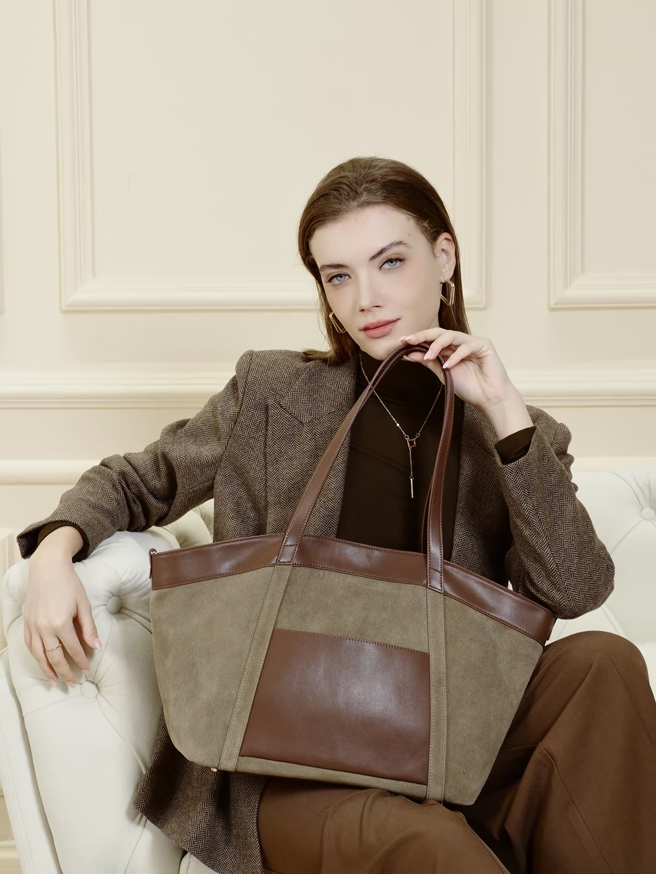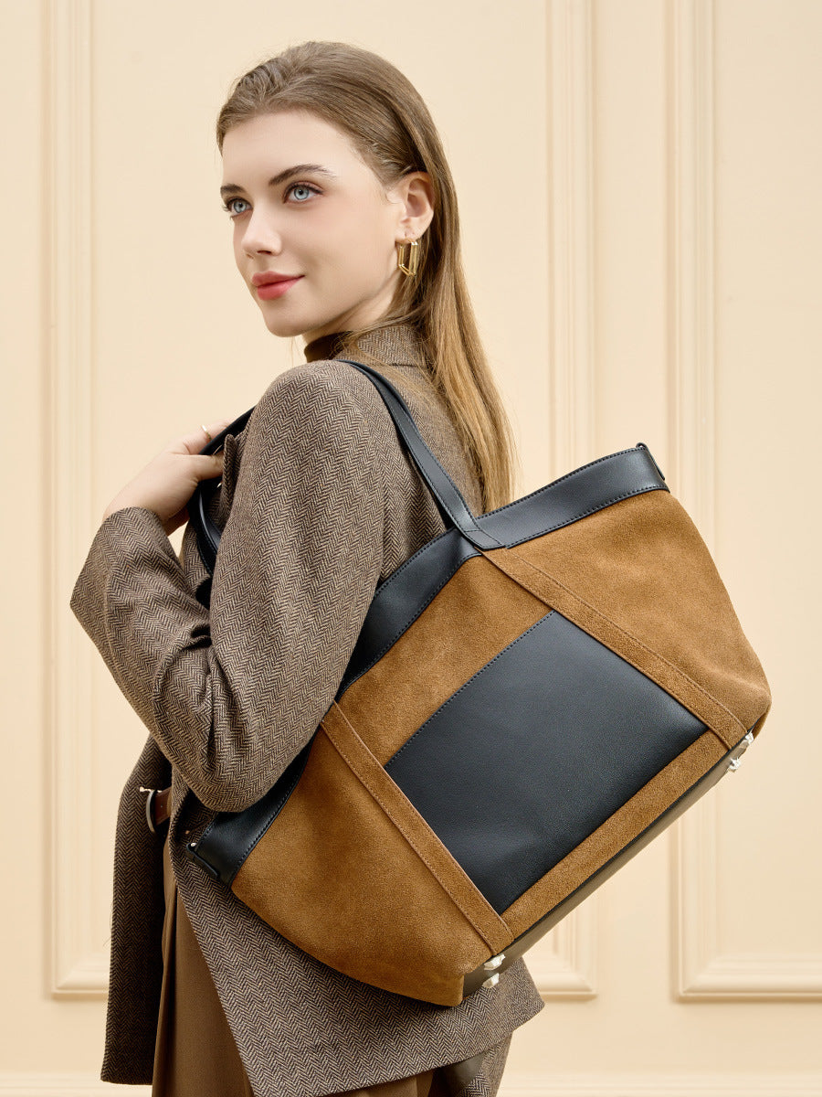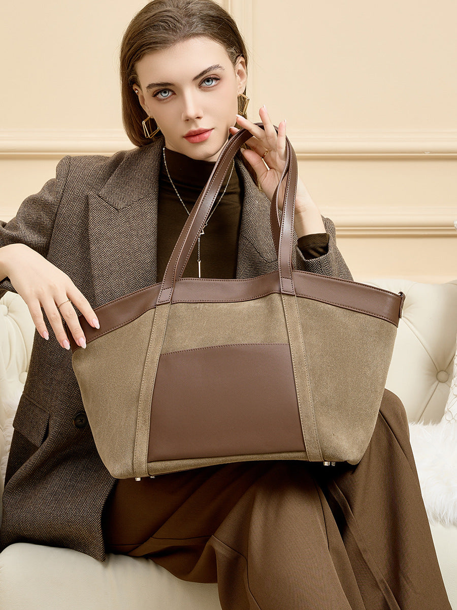 Elegante Shopper-Bag im modernen Design – die Kombination aus Wildleder-Optik und glatten PU-Lederelementen verleiht der Tasche einen hochwertigen Look. Perfekt für Büro, Alltag und Reisen mit viel Stauraum und stilvollem Auftritt.